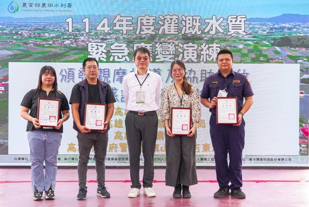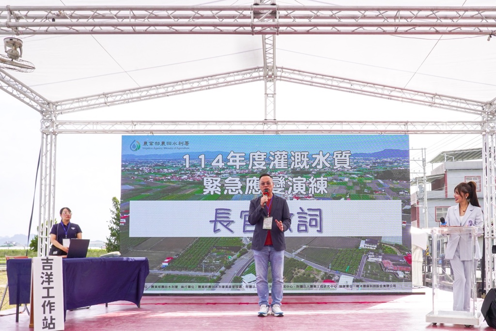 農業部農田水利署為提升各管理處對於緊急應變事件處置能力,於114年10月21日假高雄管理處吉洋工作站旁獅子頭圳一幹三支線舉辦「灌溉水質緊急應變演練」。透過模擬真實情境,提升人員對應變流程及設備工具操作之熟稔度,並加強突發事件的處理效能,降低污染事件對灌溉用水品質的潛在影響。